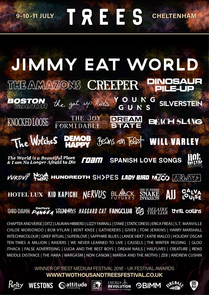 2000 Trees, the eco-friendly festival in the heart of Cheltenham have announced the latest wave of acts at this years festival. Already on the lineup are Jimmy Eat World, Knocked Loose, Creeeper, Hot Milk and many more.