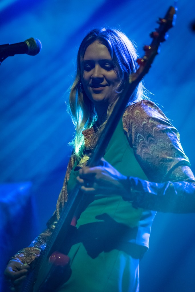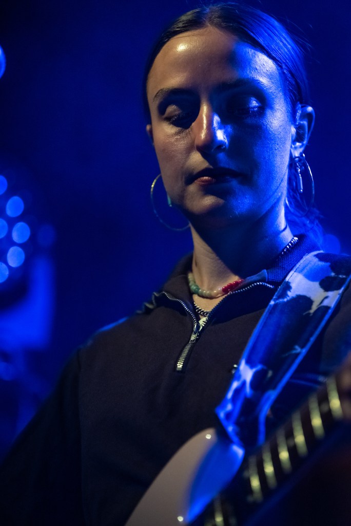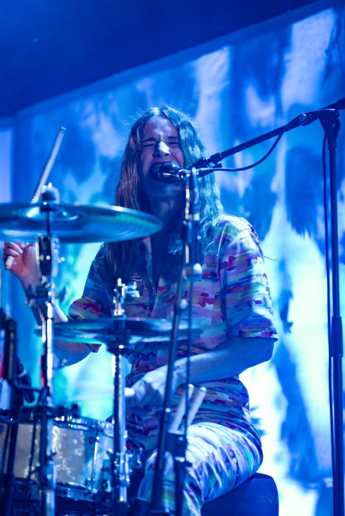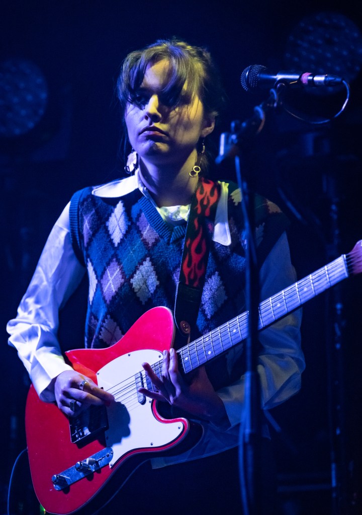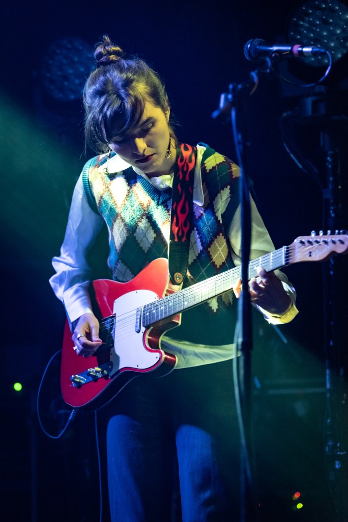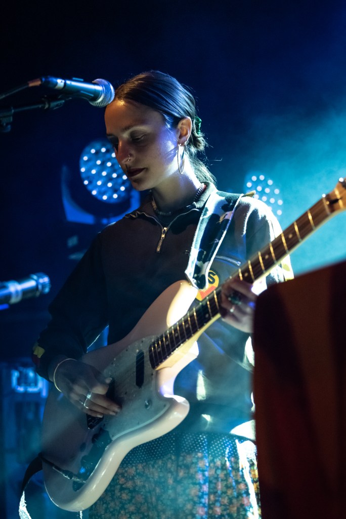Opening the night was ‘Goat Girl’ a 5 piece post punk band from London. Their recent album ‘On all Fours’ followed their acclaimed 2018 self titled debut with a fuller sound, with added electronic elements. The thumping beat was present throughout the set with the whirling guitars creating a big sound but 3 part harmonised vocals softening the mix. It was an interesting set and, although pinned to the front of the stage by Metromony’s gear, the clever use of some simple set dressing gave the band a presence that drew great appreciation from the crowd.