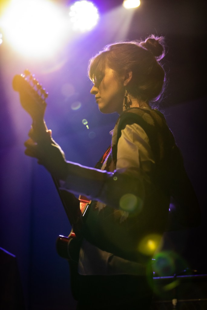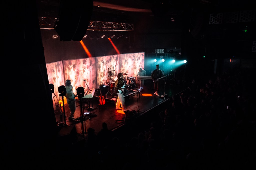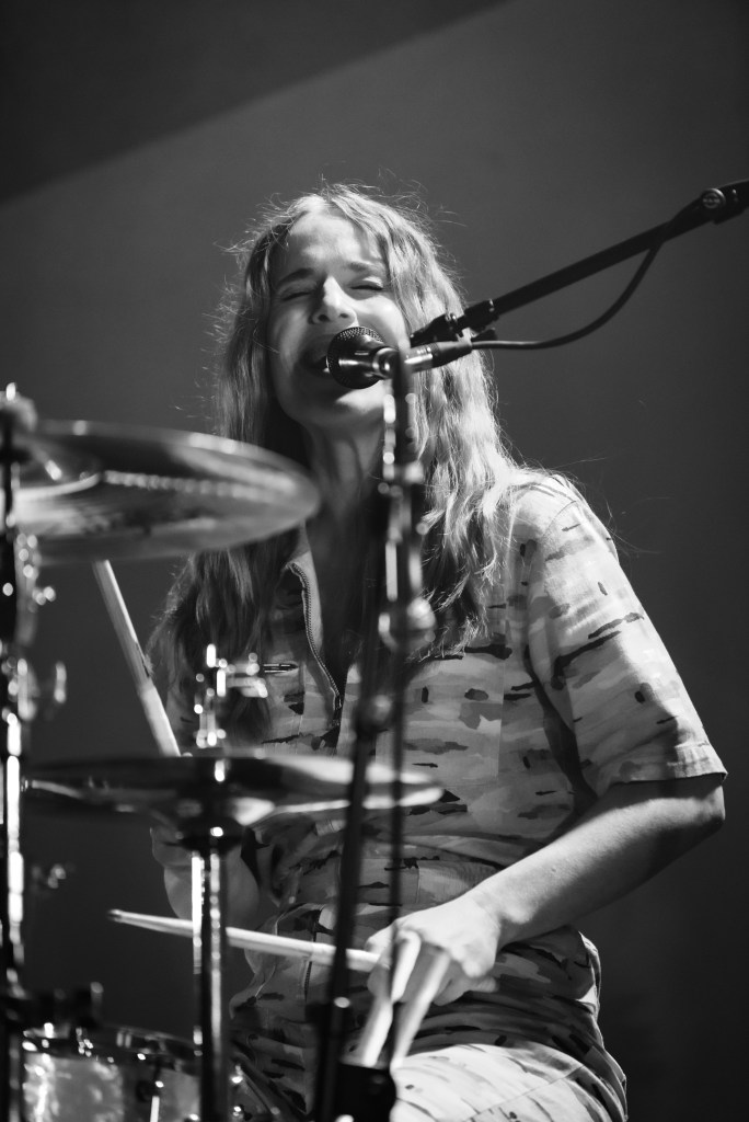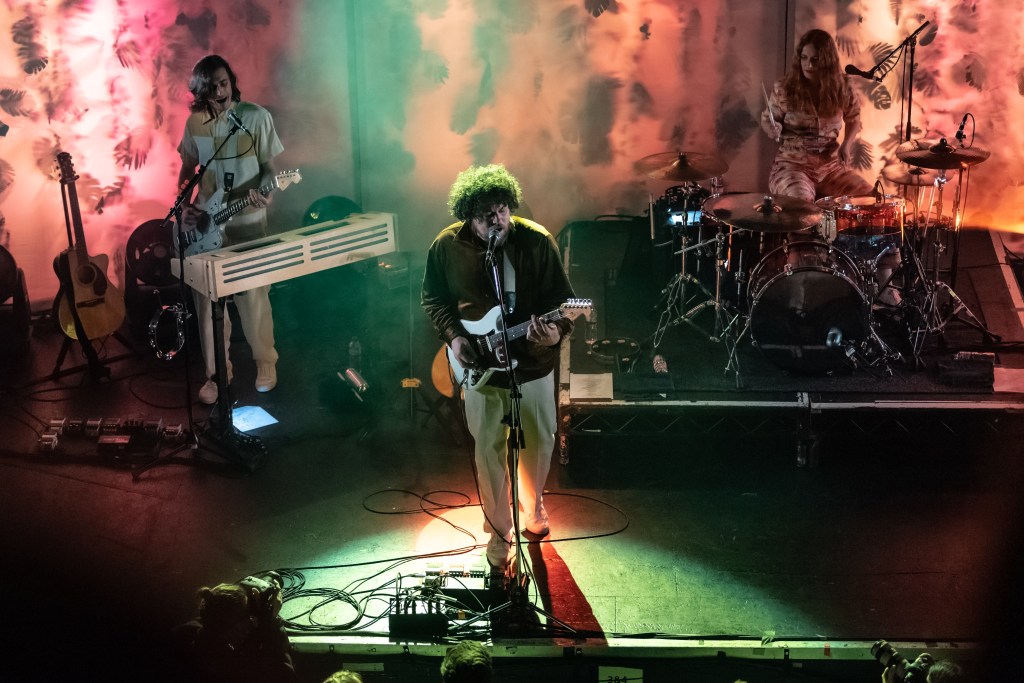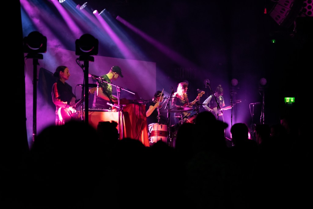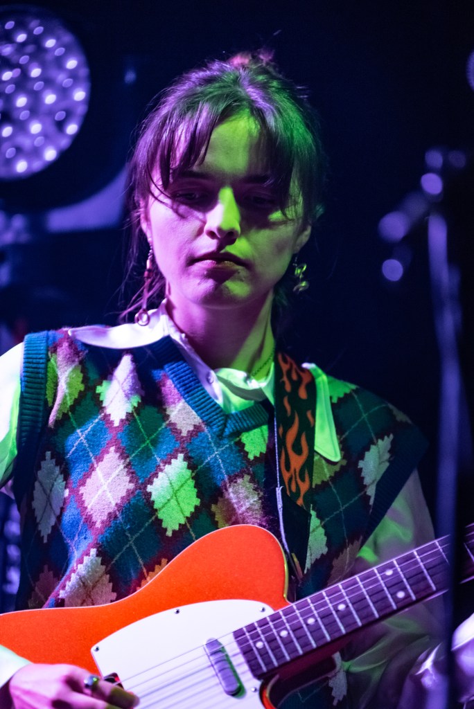 Opening the night was ‘Goat Girl’ a 5 piece post punk band from London. Their recent album ‘On all Fours’ followed their acclaimed 2018 self titled debut with a fuller sound, with added electronic elements. The thumping beat was present throughout the set with the whirling guitars creating a big sound but 3 part harmonised vocals softening the mix. It was an interesting set and, although pinned to the front of the stage by Metromony’s gear, the clever use of some simple set dressing gave the band a presence that drew great appreciation from the crowd.