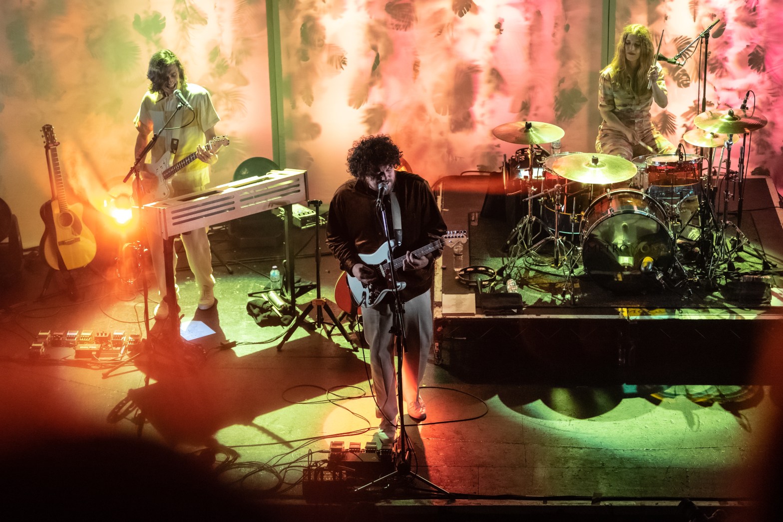 Opening the night was ‘Goat Girl’ a 5 piece post punk band from London. Their recent album ‘On all Fours’ followed their acclaimed 2018 self titled debut with a fuller sound, with added electronic elements. The thumping beat was present throughout the set with the whirling guitars creating a big sound but 3 part harmonised vocals softening the mix. It was an interesting set and, although pinned to the front of the stage by Metromony’s gear, the clever use of some simple set dressing gave the band a presence that drew great appreciation from the crowd.