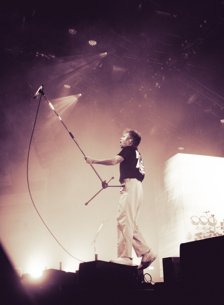 There could be paragraphs about Shikari’s live visuals to be honest. As always, there was buzz around how they’re going to raise the bar that Shikari themselves have set and maintained, and now certainly jumped over. Even in the year since I’ve seen them last, it really is safe to say that they’re dedication to elaborate live visuals is tastefully ostentatious. Specifically Rou’s, now seemling iconic, climb up the screens, where is proseeds to ‘dive’ into the large light box, and the water visuals reflect himself being trapped underwater. Love lasers, confetti and sparkles? Yeah you really missed out, there.