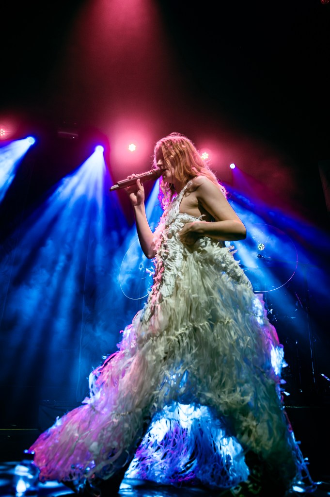 Paris Paloma starts their set with ‘my mind (now)’, the opening track of their latest record, Cacophony, with just her (nearly incomprehensible) raw acapella vocals and some soft distant instrumentals. The beat drops after the line “… to endure what you put me through, I don’t think you would pull out on the other side”, and the room is immersed with their powerful vocals, colour, synths, the rhythm of the drums and some dramatic brass. Whilst not all of these sounds seem to be performed live, the 1 hour and 15-minute set starts in the most cacophonous way possible, defining the album and tour title in just the first song of the night. Knowing that most of the setlist is expected to be much quieter, I know who I am here to see and that Paloma’s angelic vocals are the highlight of the performance.